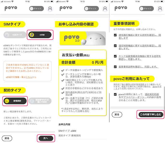 ということで以前から検討していた au 回線の povo の eSIM に申し込むことにしました。