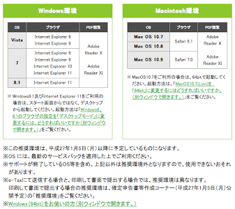 平成 26 年分の確定申告ができる e-tax の推奨環境が発表されていますね。