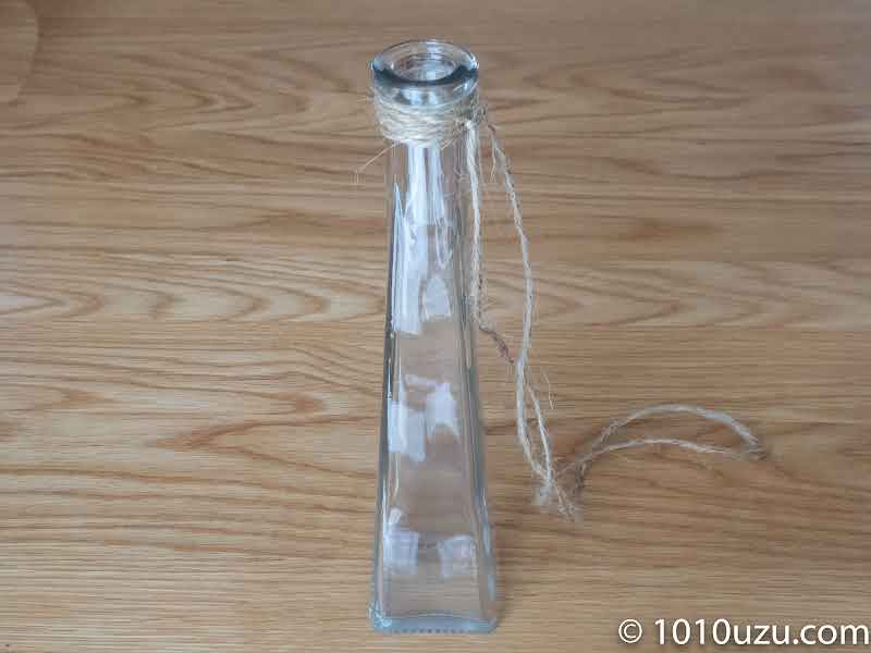 買ってきたのは細いビンです。 100 均のセリアで買いました。口が厚くなっている物を選びました。