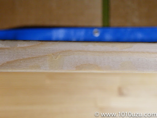 3 回目の塗装の前に 400 番の紙やすりで天板を磨きました。こうすることで塗装がすべすべに仕上がるようです。 400 番のヤスリをかけたらそれだけですべすべすぎて楽しくなってしまったので、天板だけのつもりが全体をヤスリがけしてしまいました。