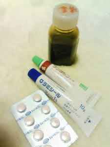 水虫の軟膏と消毒薬と抗生物質を処方してもらいました。
