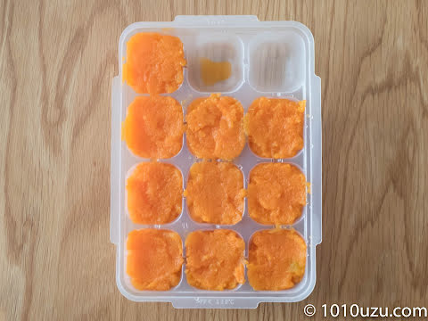 かぼちゃはにんじんとほぼ同じですが、 3-4 の「いもかぼちゃ」で裏ごしできる充分な柔らかさになります。